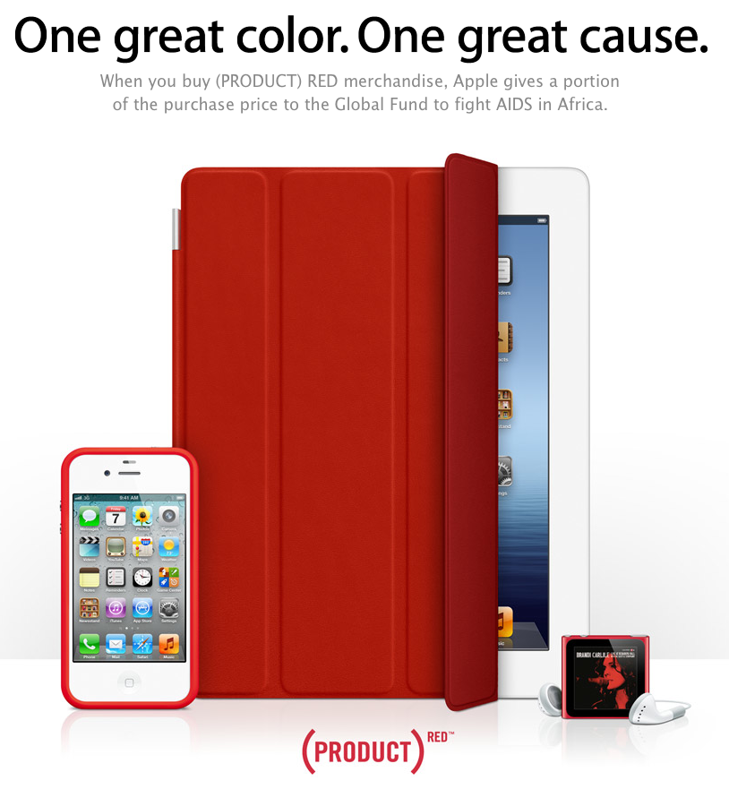 Apple dnes rozšíril svoju ponuku produktov zo série (Product) RED™. Program na pomoc nemocným ľuďom v Afrike, ktorí trpia najmä vírusom HIV spustila spoločnosť Nike, keď začala predávať červené šnúrky do topánok. Výťažok z predaja produktov s označením (Product) RED™ smeruje priamo pre ľudí so spomínanými ochorením. Apple okrem Bumpera pre iPhone 4 či 4S, predáva tri produkty s označením (Product) RED™ – iPod nano a iPad obaly Smart Cover a Smart Case.