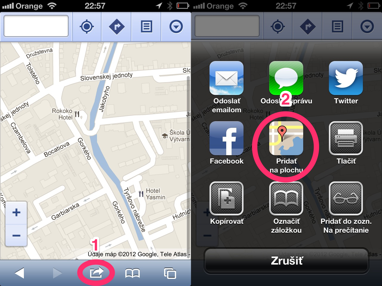 Pre tých, ktorí si na pracovne ploche vo svojom iOS zariadení ešte nestihli vytvoriť zástupcu Google Máp, uvádzame stručný postup (pre používateľov iOS 6):